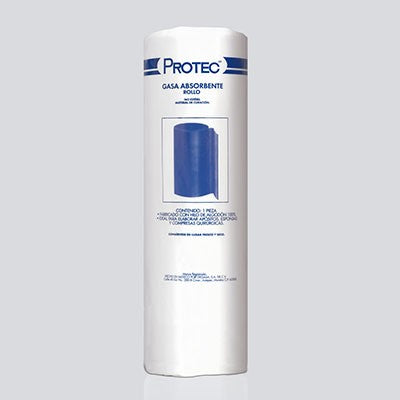 Gasa absorbente rollo marca PROTEC. Fabricado con hilo de 100% algodón. Ideal para elaborar apósitos; gasas y/o compresas quirúrgicas.
